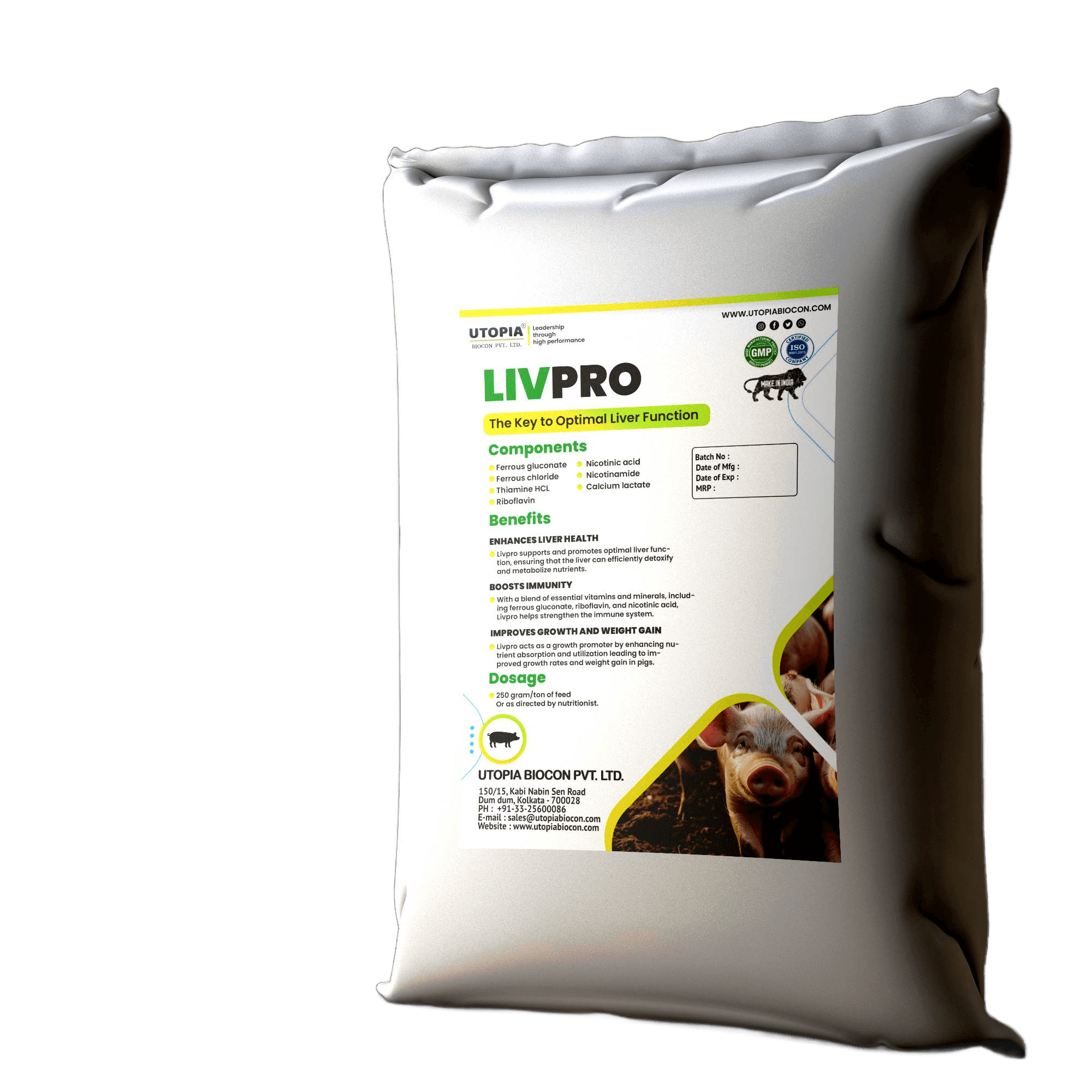3) Livpro acts as a growth promoter by enhancing nutrient absorption & utilization leading to improved growth rates & weight gain in pigs.